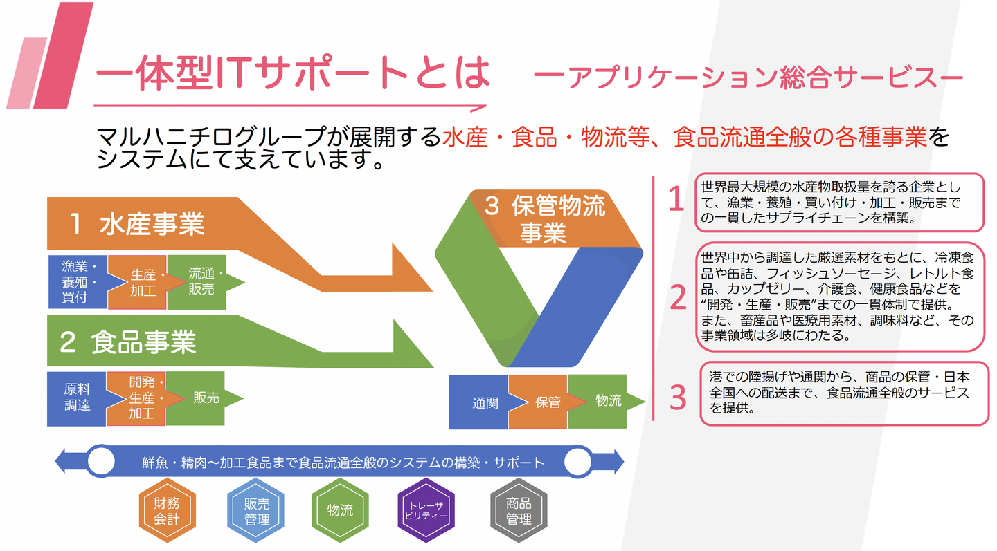 フルライン、業界特化(建設、製薬、金融、運輸、通信、食品など) |
